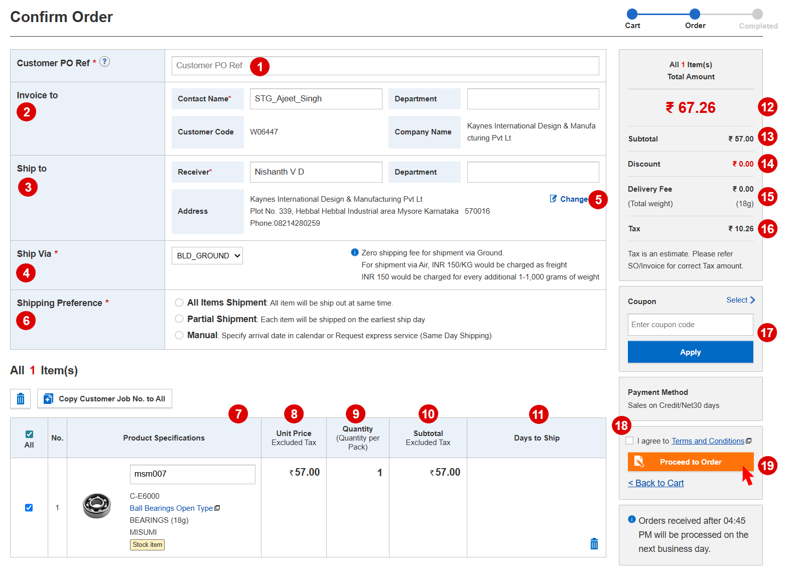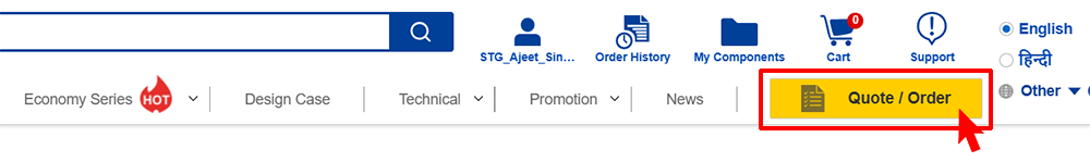 Step 2 - Click “Quote/Order” to proceed to the Order page