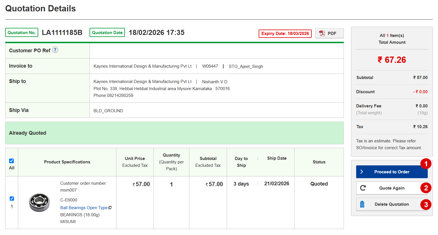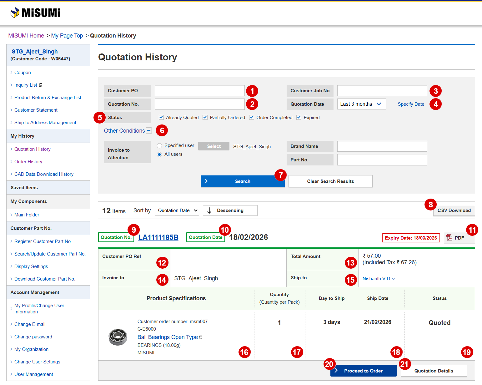 - 11 Download a single quotation in PDF Format, if required.