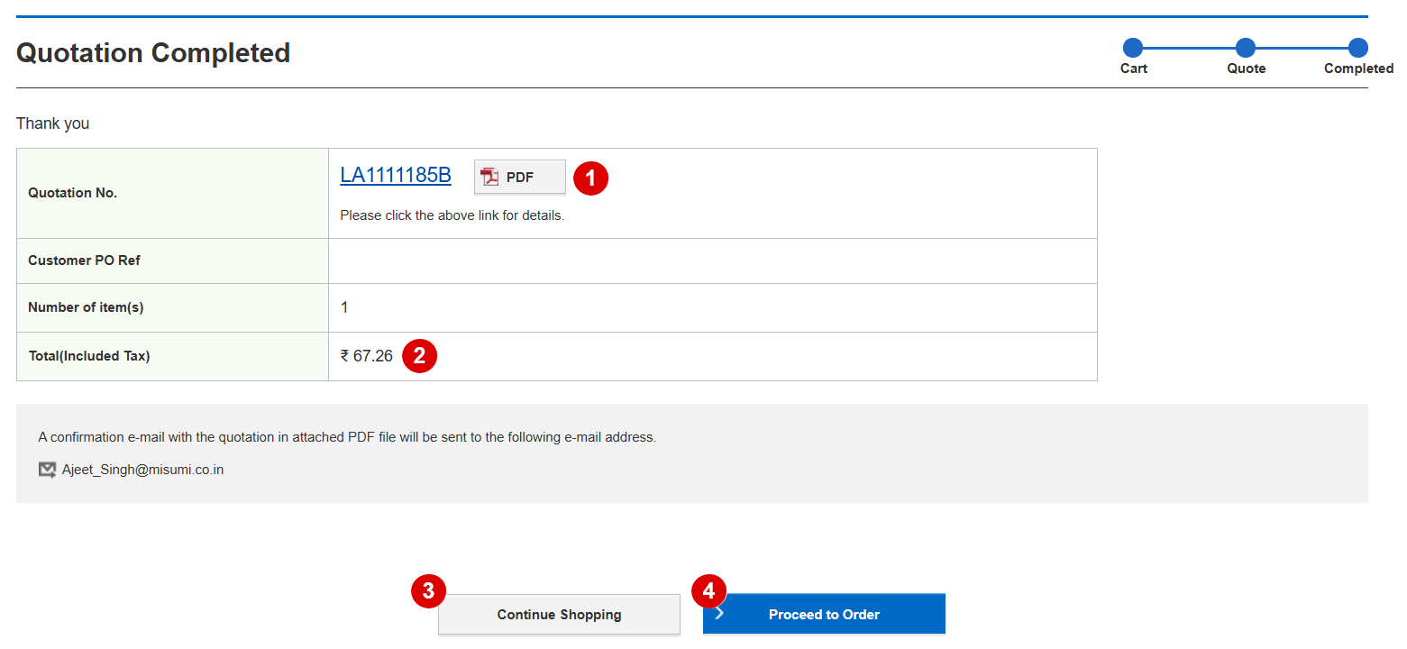 - 4 If the Quotation is finalized, click Proceed to Order to complete the process.