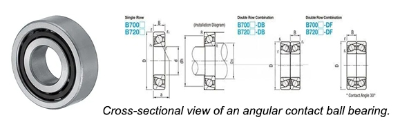 - Angular Contact Ball Bearings: Designed for combined radial and axial loads. They offer various contact angles (e.g., 15∘,25∘,30∘); a greater angle increases the axial load capacity but decreases the radial capacity.