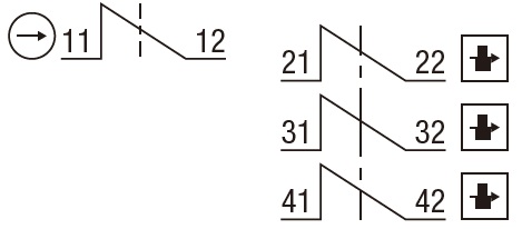 | Contact configuration For example: 2NC+1NC/NO | Factory state (key not inserted) | Door closed state (key inserted) | Door closed state (key inserted and locked) | Door open state (key removed) | Manual unlocking - perform unlocking![]() |